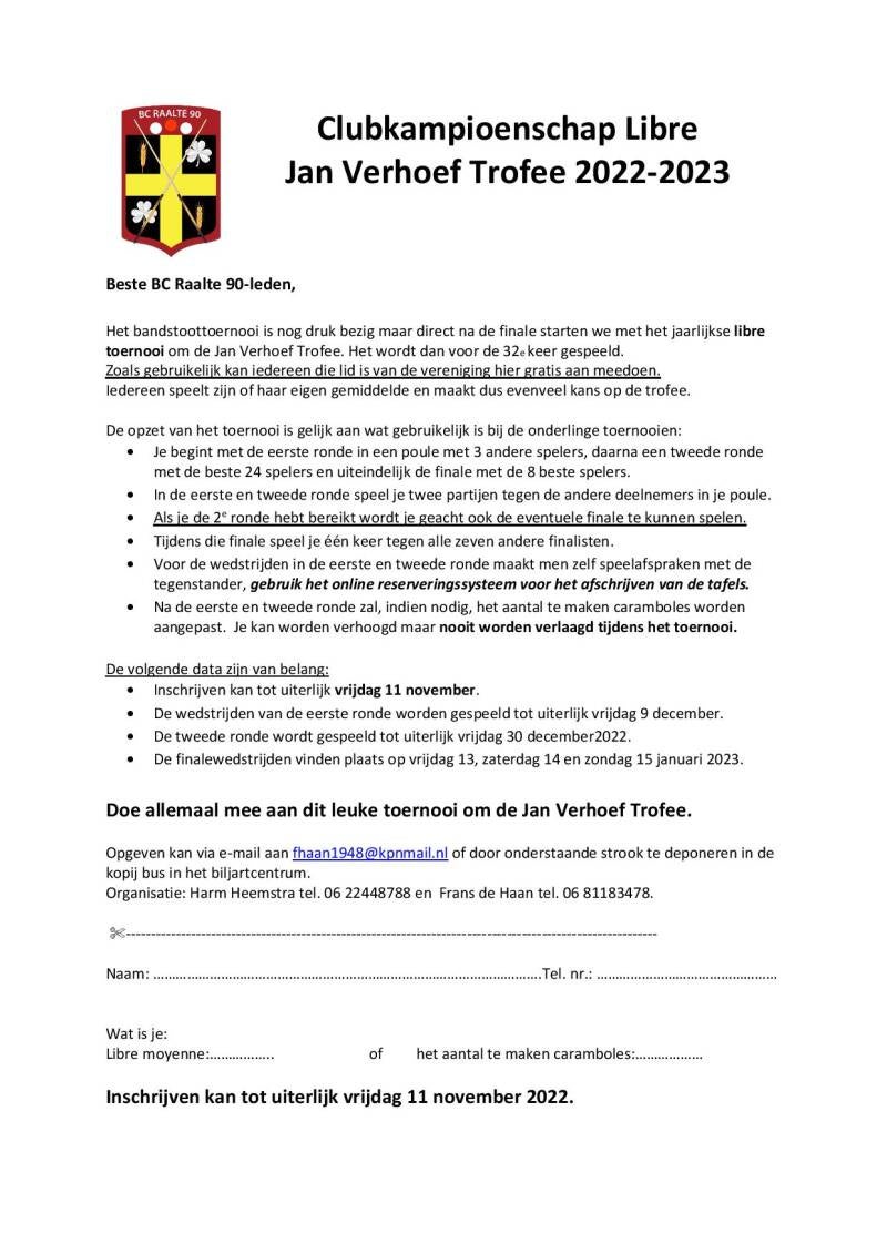 Direct na afloop van de finale waarin wordt bepaald wie de beste bandstoter van onze club is, start de strijd om de beste libre-speler: de Jan Verhoef Trofee.