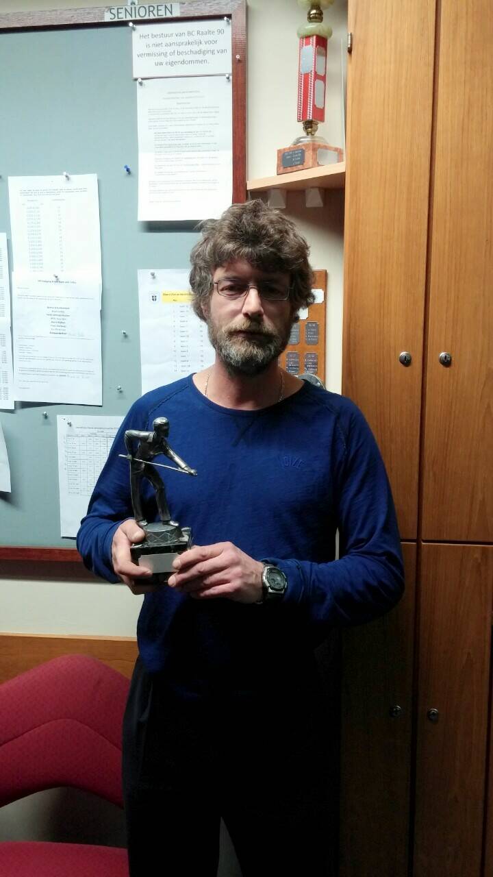 Na het officiële overhandigen van de trofee kwam Harm nog even om de hoek zetten met een verrassing voor de kampioen. De huidige bokaal is volledig voorzien van etiketten met daarop alle winnaars sinds 2004. Het bestuur heeft daarom besloten om een nieuwe trofee aan te schaffen, en de "oude" aan de veelvoudig kampioen te geven, iets wat door Roel bijzonder op prijs werd gesteld, vooral ook vanwege de band die hij had met Henk Valk.