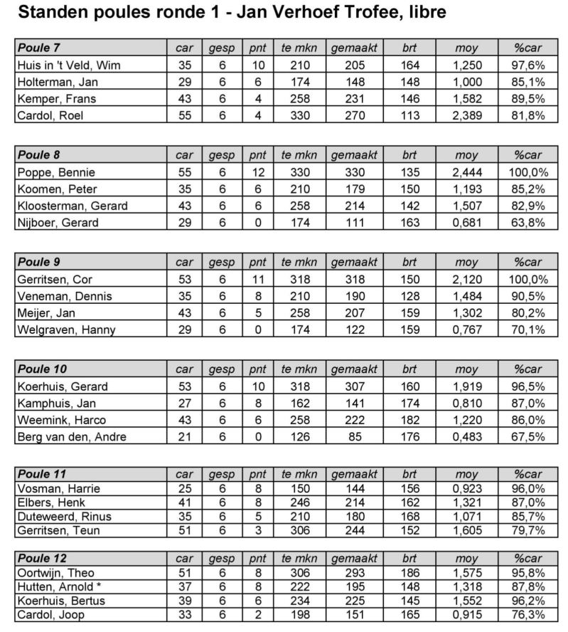 Eindstand per poule - ronde 1